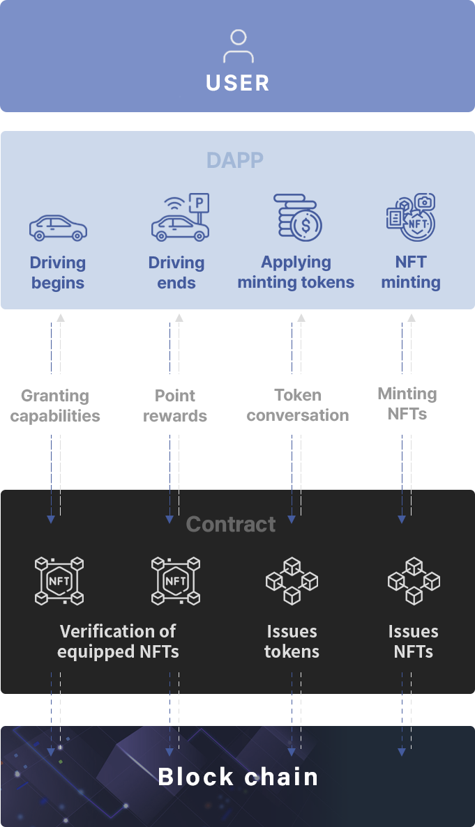 사용자는 장착하고 있는 NFT와 운전 습관등이 보상에 영향을 줍니다.