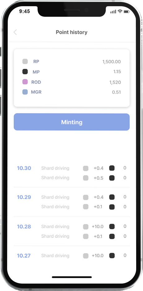 POINT와 토큰메타게이지는 유저의 데이터 생성에 대한 보상으로 포인트를 제공합니다. 유저가 획득할 수 있는 포인트의 종류는 RP와 MP가 있습니다.